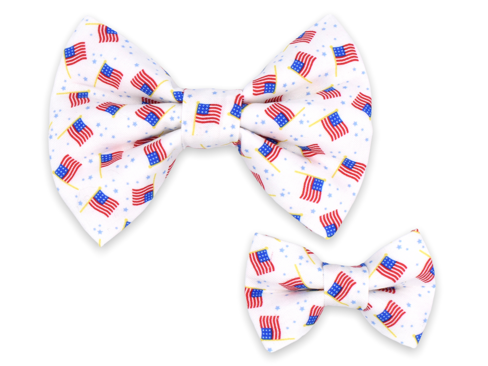 Our original style bow tie! This style features two elastic straps stitched to the backside of the bow tie for your pet’s collar to slide through. The elastic straps are triple-stitched to the bow tie for extra security. This style requires a collar for wear.