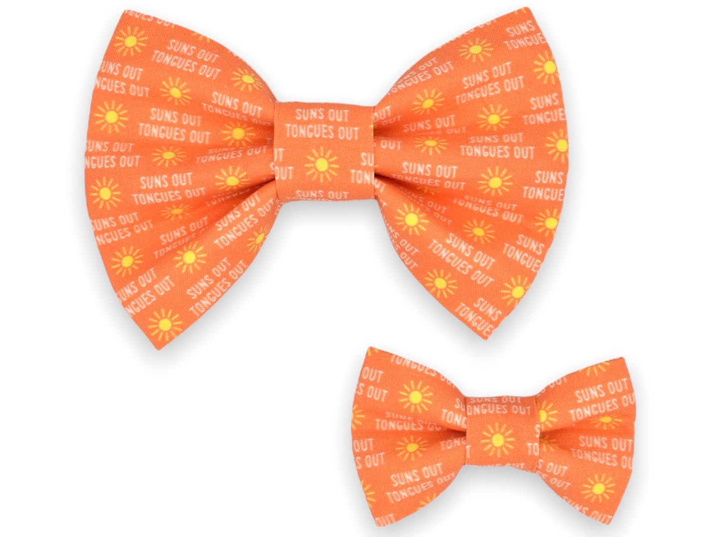 Our original style bow tie! This style features two elastic straps stitched to the backside of the bow tie for your pet’s collar to slide through. The elastic straps are triple-stitched to the bow tie for extra security. This style requires a collar for wear.