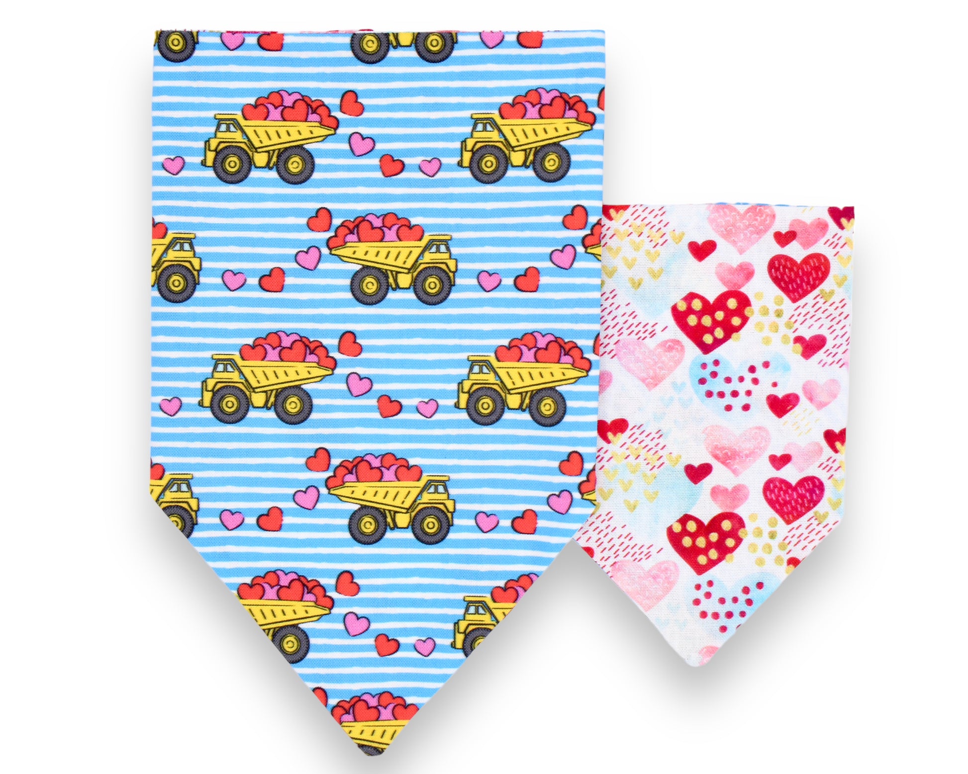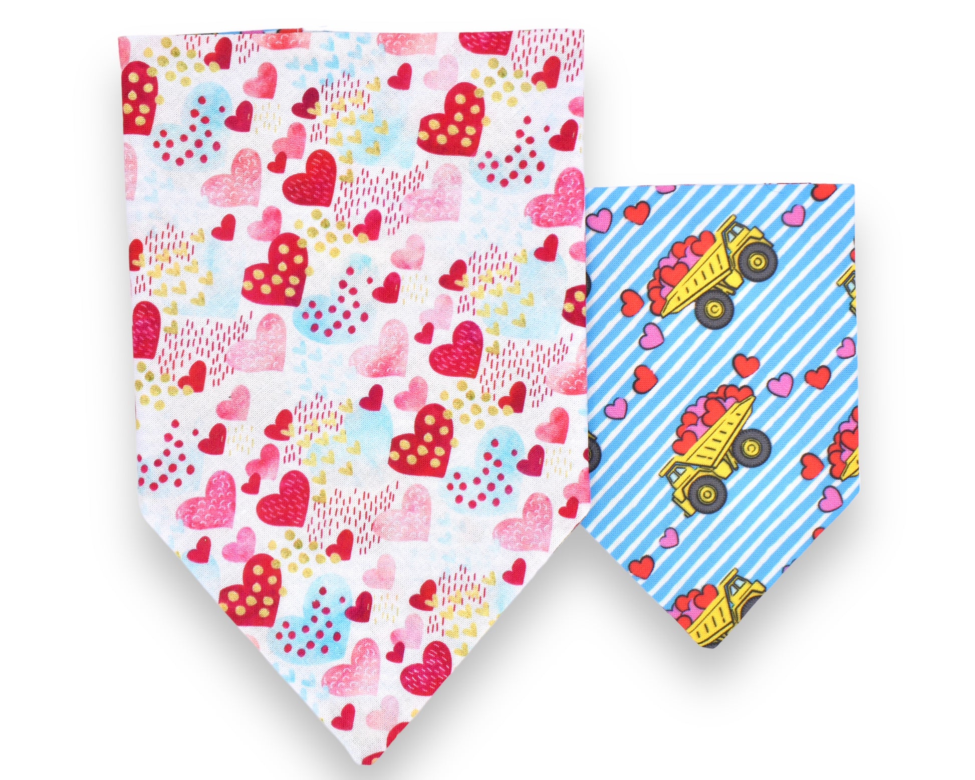 This style is dual-sided with a collar or theme-coordinated pattern on the reverse side, offering a two-for-one style option! This style can be worn by slipping your pet’s collar through the openings at the top of the bandana, and then clipping the collar around your pet’s neck. This style requires a collar for wear.