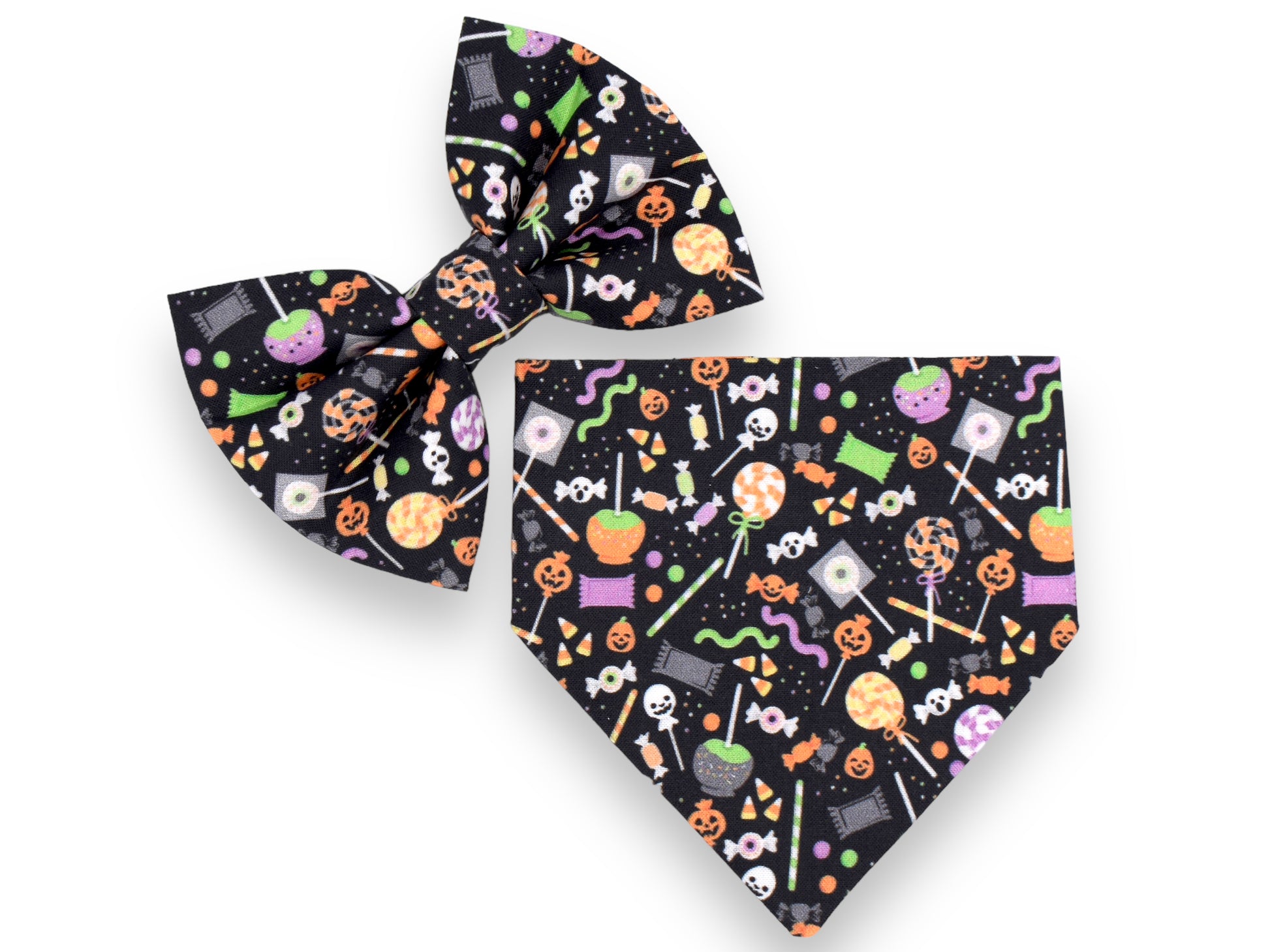 Accessories are not intended for rough wear. Bow ties with elastic collars and scrunchie-style bandanas completely circle your pet’s neck and are not made with a breakaway function. We do not recommend leaving your pet unsupervised while wearing any accessory. Spot clean mild detergent and lay flat to dry. If ironing, cover with thin cloth and use low heat and pressure.