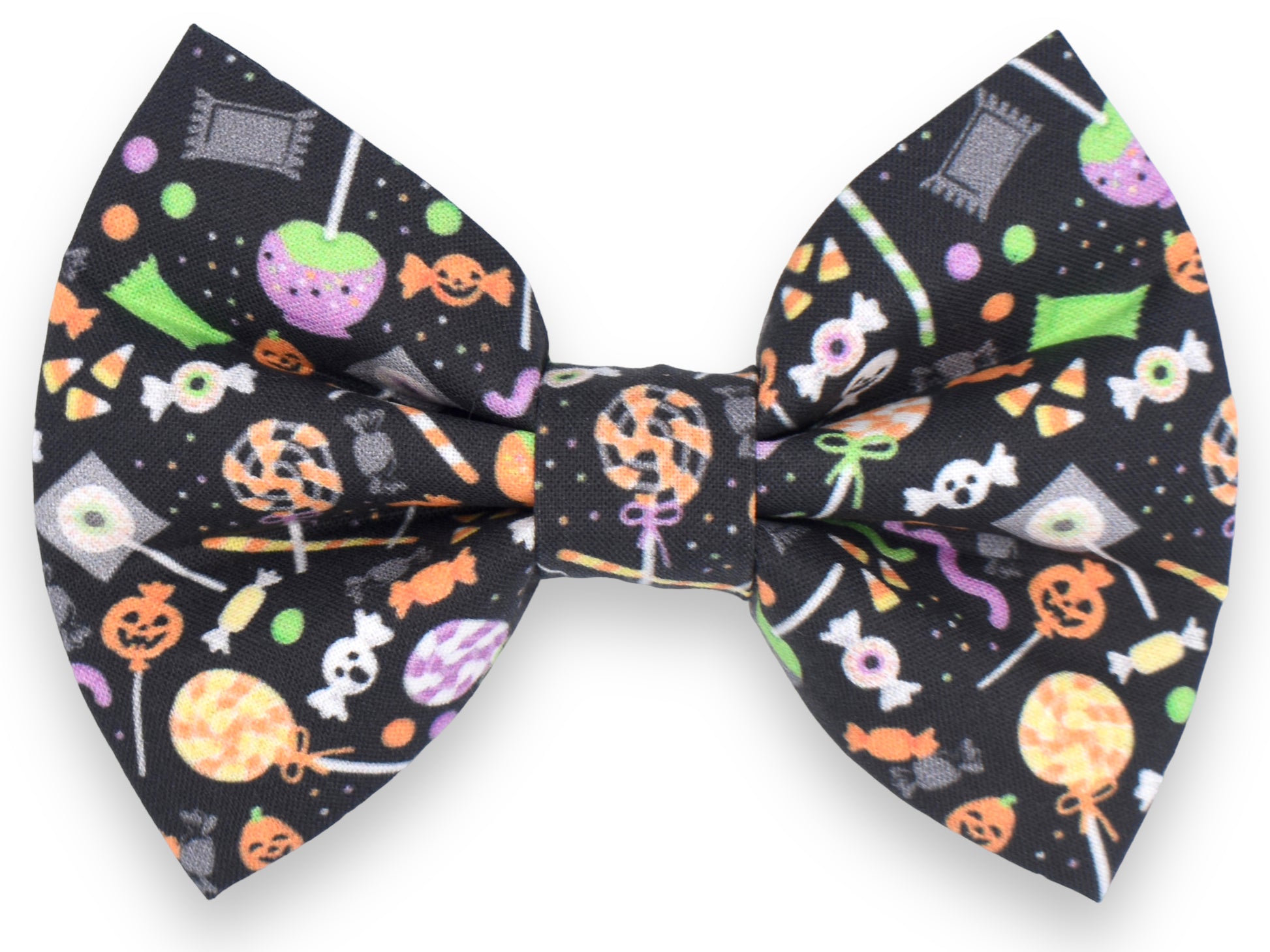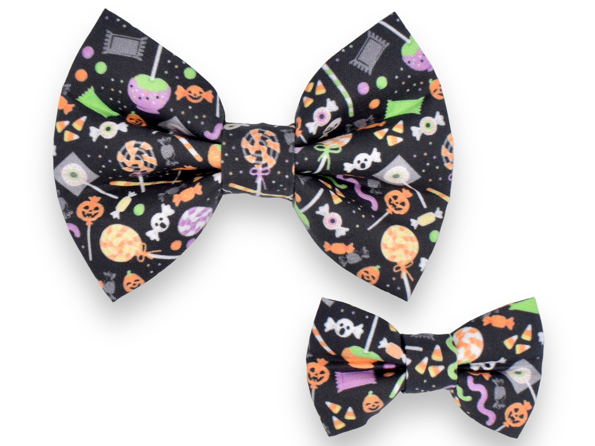 Our original style bow tie! This style features two elastic straps stitched to the backside of the bow tie for your pet’s collar to slide through. The elastic straps are triple-stitched to the bow tie for extra security. This style requires a collar for wear.