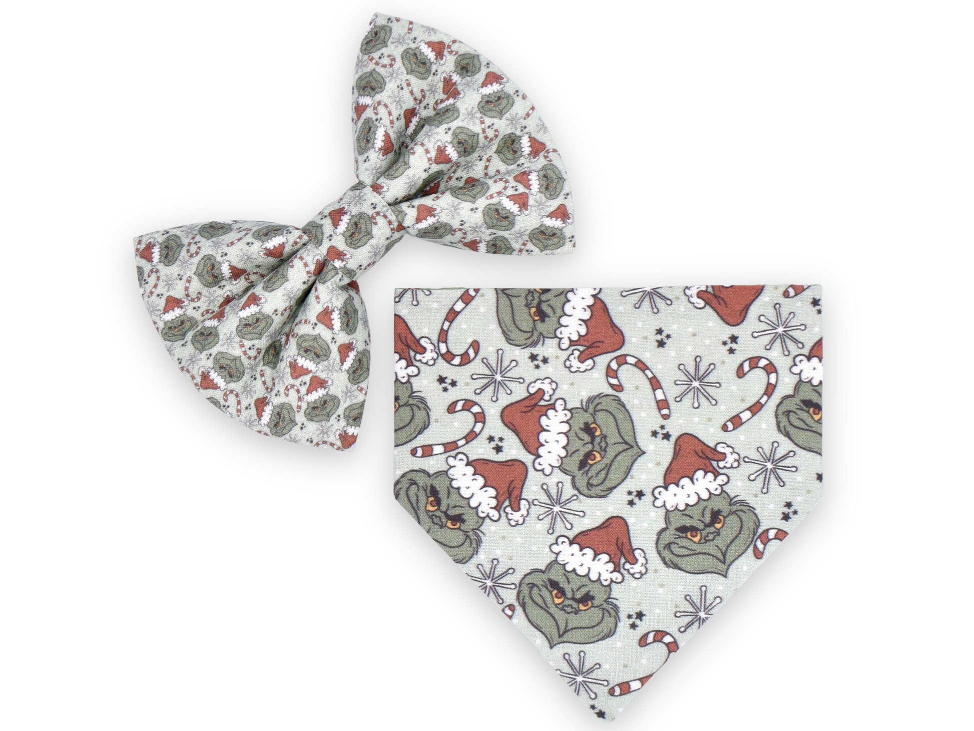 Accessories are not intended for rough wear. Bow ties with elastic collars and scrunchie-style bandanas completely circle your pet’s neck and are not made with a breakaway function. We do not recommend leaving your pet unsupervised while wearing any accessory. Spot clean mild detergent and lay flat to dry. If ironing, cover with thin cloth and use low heat and pressure.