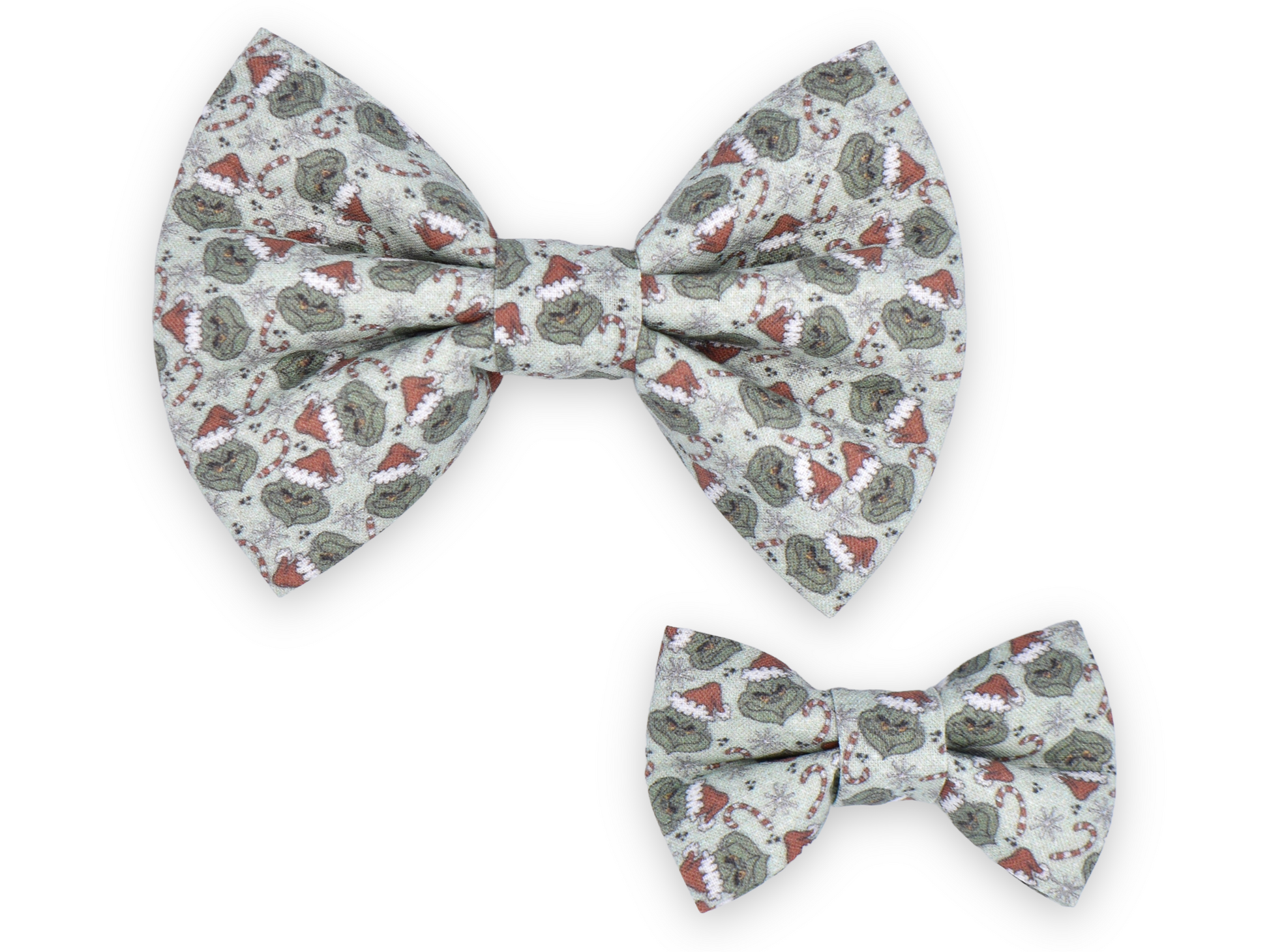 Our original style bow tie! This style features two elastic straps stitched to the backside of the bow tie for your pet’s collar to slide through. The elastic straps are triple-stitched to the bow tie for extra security. This style requires a collar for wear.
